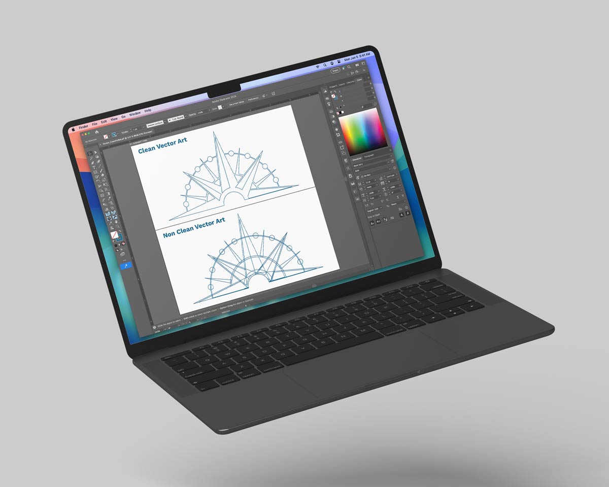 Clean vectors are streamlined and efficient for editing and production, while non-clean vectors are cluttered, inefficient, and prone to errors.