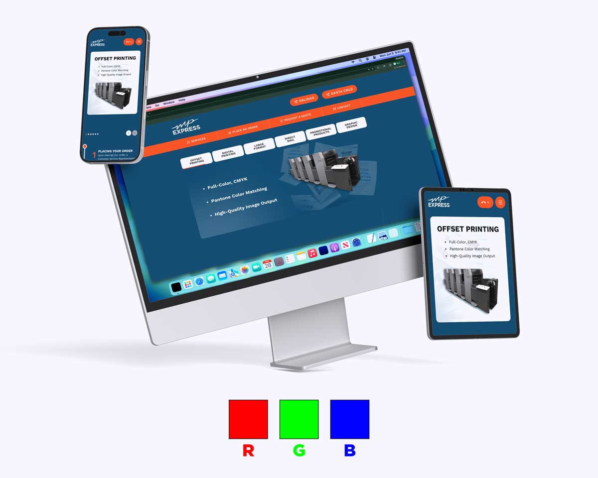When you create designs digitally — such as graphics for a website or social media — you’re typically working in RGB color mode, which stands for Red, Green, and Blue. RGB is an additive color system: colors are made by combining light, and when all three components are at full intensity, the result is white.